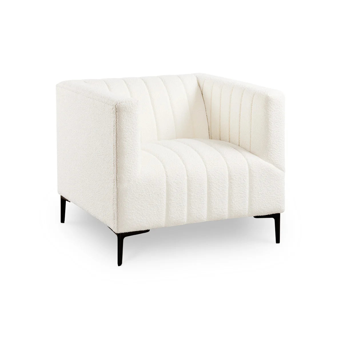 Meet the Flora Collection – soft boucle fabric with sleek black legs. Luxurious and inviting, this collection effortlessly blends modern style with comfort. Elevate your living space with the Flora Collection, where plush texture meets chic design for an enchanting seating experience.
