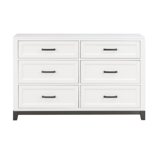Meet The Winston Dresser - Blending transitional lines with rustic styling to create an elegant addition for your bedroom. The distinct grain features a 2-tone finish. Metal bar hardware accents the picture frame drawer fronts of the dresser.